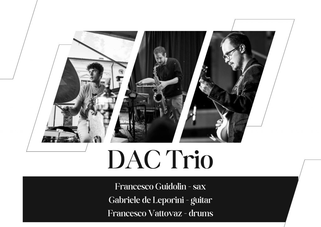 Il DAC trio è un viaggio musicale che nasce da un’esplorazione sonora senza confini, dove la tradizione si fonde con l’innovazione. Composto da sassofono, chitarra e batteria, il nostro repertorio è caratterizzato da composizioni originali che raccontano storie, emozioni e sensazioni attraverso l’improvvisazione e il dialogo continuo tra i tre strumenti.